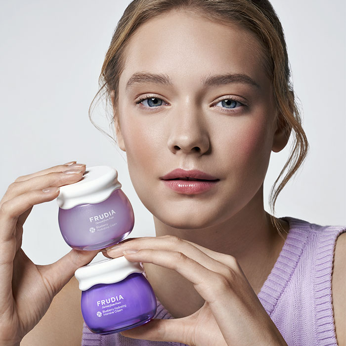 Предлагаем вам попробовать уходовую косметику, которая обладает всеми полезными свойствами фруктов. Вы можете купить в нашем интернет-магазине Увлажняющий крем с черникой FRUDIA BLUEBERRY HYDRATING CREAM по доступной цене с доставкой в Москве. Увлажняющий крем с черникой Blueberry Hydrating Cream Frudia - это невероятно легкая гелевая текстура, напоминающая черничное желе. Крем проникает в глубокие слои кожи моментально увлажняет и смягчает, не оставляя чувства липкости. Благодаря своей текстуре, крем-гель легко распределяется по коже и помогает сохранить влагу на протяжении 48 часов (согласно клиническим исследованиям). При создании была использована уникальная технология 48 часовой низкотемпературной экстракции, что обеспечивает более глубокое проникновение в слои эпидермиса и максимальное сохранение всех полезный питательных веществ и витаминов из фруктов. Вместо воды основу крема составляет фруктовая выжимка - 77% экстракта черники, благодаря чему средство насыщено на антиоксиданты. Исключены все химические элементы вредные для кожи, что сводит к минимуму возможность появления раздражений на коже. Крем обеспечивает глубокое увлажнение, устраняет сухость, шелушения и отлично подходит для ежедневного ухода за нормальной, обезвоженной, комбинированной и сухой кожей.