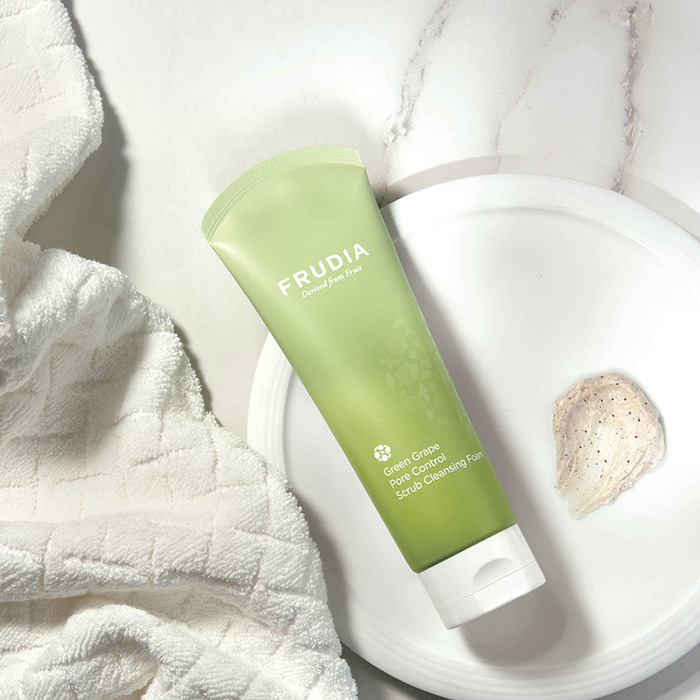 Себорегулирующая скраб-пенка с зеленым виноградом FRUDIA GREEN GRAPE PORE CONTROL SCRUB CLEANSING FOAM бережно очищает кожу от загрязнений, оставляя кожу безупречно чистой, мягкой и увлажненной. Экстракт зеленого винограда, богатый танинами, регулирует выделение себума и успокаивает кожу, а натуральные частицы косточек винограда мягко удаляют омертвевшие клетки и очищают поры. Освежающая очищающая пенка одновременно удаляет загрязнения кожи, избытки себума и омертвевший кератиновый слой клеток. Комплекс “Антипыль” с фитонцидными ингредиентами поглощает и удаляет загрязнения и мелкую пыль. Скраб из натуральных виноградных косточек полностью удаляет загрязнения, в том числе старый кератиновый слой клеток, который приводит к закупорке пор. В результате кожа - гладкая и матовая.