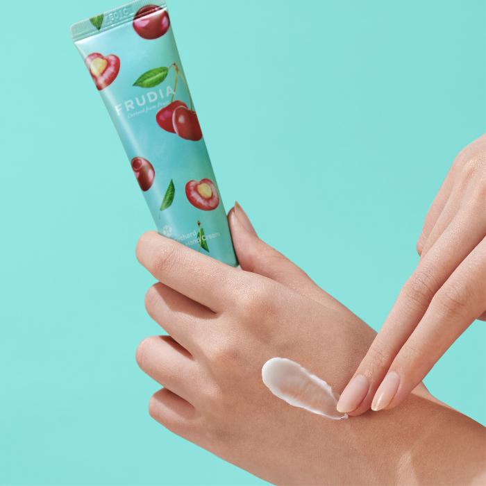Крем для рук FRUDIA MY ORCHARD CHERRY HAND CREAM дарит нежной коже рук комфорт, моментально увлажняет, глубоко питает, смягчает огрубевшие зоны, устраняет сухость и шелушения. Он разглаживает кожу рук, запускает процессы регенерации, уменьшает морщинки и заломы, повышает упругость и эластичность. Крем окутывает кожу приятным ароматом спелой вишни, поднимает настроение и заряжает положительными эмоциями на весь день. В состав крема входит масло ши, которое известно своими регенерирующими и омолаживающими свойствами, поможет смягчить и напитать кожу. Аденозин помогает повысить упругость кожи и ускоряет синтез коллагена. Комплекс масел поможет укрепить иммунитет эпидермиса, оздоровить микробиом, улучшить защитные функции кожи. Витамин Е помогает поддерживать уровень влаги в коже, делает ее гладкой и шелковистой. Растительные экстракты освежают кожу, придают ей тонус, насыщают полезными веществами и витаминами, способствуют скорейшему заживлению ранок и повреждений.