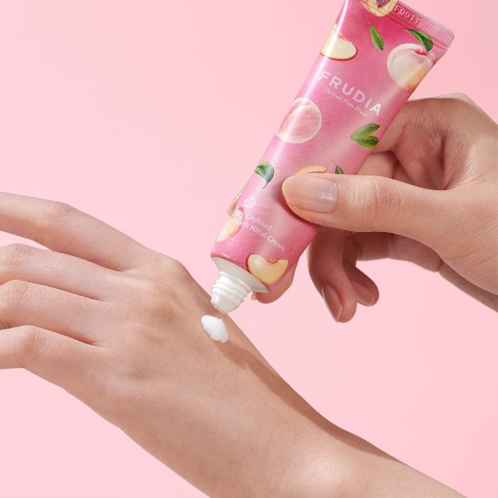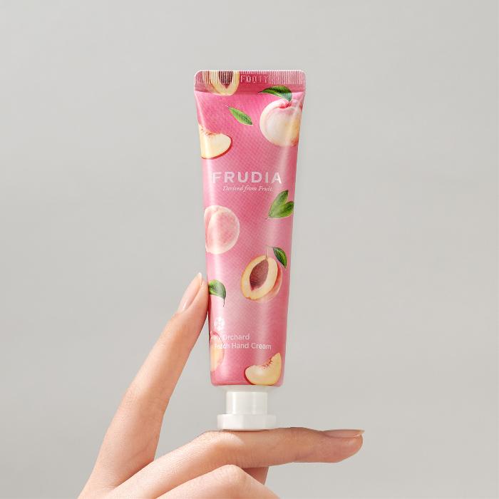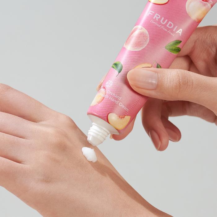 Крем для рук FRUDIA MY ORCHARD PEACH HAND CREAM дарит нежной коже рук комфорт, моментально увлажняет, глубоко питает, смягчает огрубевшие зоны, устраняет сухость и шелушения. Он разглаживает кожу рук, запускает процессы регенерации, уменьшает морщинки и заломы, повышает упругость и эластичность. Крем окутывает кожу приятным ароматом персика поднимает настроение и заряжает положительными эмоциями на весь день. В состав крема входит масло ши, которое известно своими регенерирующими и омолаживающими свойствами, поможет смягчить и напитать кожу. Аденозин помогает повысить упругость кожи и ускоряет синтез коллагена. Комплекс масел поможет укрепить иммунитет эпидермиса, оздоровить микробиом, улучшить защитные функции кожи. Витамин Е помогает поддерживать уровень влаги в коже, делает ее гладкой и шелковистой. Растительные экстракты освежают кожу, придают ей тонус, насыщают полезными веществами и витаминами, способствуют скорейшему заживлению ранок и повреждений.