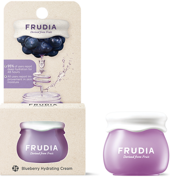 Увлажняющий крем с черникой Blueberry Hydrating Cream Frudia - это невероятно легкая гелевая текстура, напоминающая черничное желе. Крем проникает в глубокие слои кожи моментально увлажняет и смягчает, не оставляет чувства липкости. Благодаря своей текстуре, крем-гель легко распределяется по коже и помогает сохранить влагу на протяжении 48 часов (согласно клиническим исследованиям). При создании была использована уникальная технология 48 часовой низкотемпературной экстракции, что обеспечивает более глубокое проникновение в слои эпидермиса и максимальное сохранение всех полезный питательных веществ и витаминов из фруктов. Вместо воды основу крема составляет фруктовая выжимка - 77% экстракта черники, благодаря чему средство насыщено на антиоксиданты. Исключены все химические элементы, вредные для кожи, что сводит к минимуму возможность появления раздражений на коже. Крем обеспечивает глубокое увлажнение, устраняет сухость, шелушения и отлично подходит для ежедневного ухода за нормальной, обезвоженной, комбинированной и сухой кожей. Мини-формат идеально подходит для первого знакомства с продуктом и использования любимого крема в поездках.