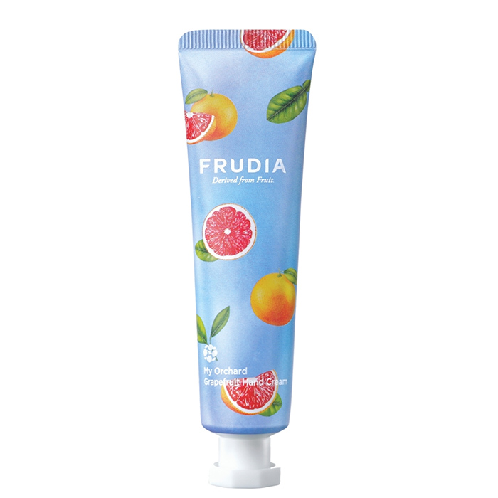 Крем для рук FRUDIA MY ORCHARD GRAPEFRUIT HAND CREAM дарит нежной коже рук комфорт, моментально увлажняет, глубоко питает, смягчает огрубевшие зоны, устраняет сухость и шелушения. Он разглаживает кожу рук, запускает процессы регенерации, уменьшает морщинки и заломы, повышает упругость и эластичность. Крем окутывает кожу приятным ароматом спелого грейпфрута, поднимает настроение и заряжает положительными эмоциями на весь день. В состав крема входит масло ши, которое известно своими регенерирующими и омолаживающими свойствами, поможет смягчить и напитать кожу. Аденозин помогает повысить упругость кожи и ускоряет синтез коллагена. Комплекс масел поможет укрепить иммунитет эпидермиса, оздоровить микробиом, улучшить защитные функции кожи. Витамин Е помогает поддерживать уровень влаги в коже, делает ее гладкой и шелковистой. Растительные экстракты освежают кожу, придают ей тонус, насыщают полезными веществами и витаминами, способствуют скорейшему заживлению ранок и повреждений. Крем быстро впитывается, моментально смягчает кожу, дарит ощущение комфорта и приятный цитрусовый аромат.