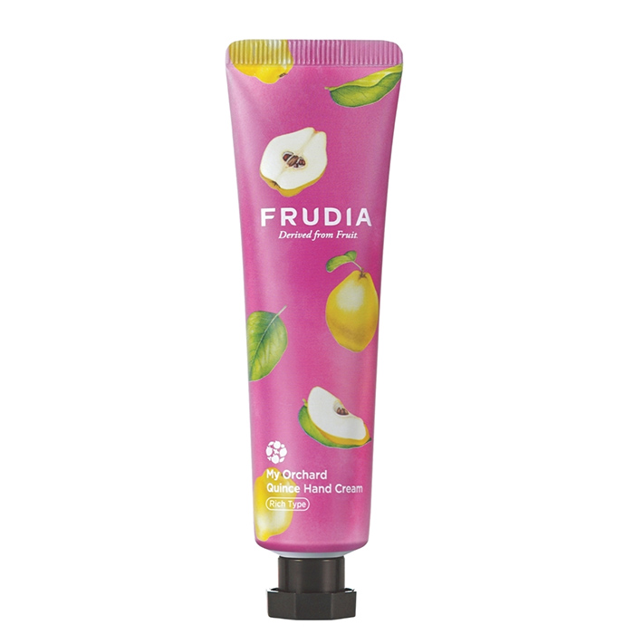 Крем для рук FRUDIA MY ORCHARD QUINCE HAND CREAM дарит нежной коже рук комфорт, моментально увлажняет, глубоко питает, смягчает огрубевшие зоны, устраняет сухость и шелушения. Он разглаживает кожу рук, запускает процессы регенерации, уменьшает морщинки и заломы, повышает упругость и эластичность. Крем окутывает кожу приятным ароматом спелой айвы, поднимает настроение и заряжает положительными эмоциями на весь день. В состав крема входит масло ши, которое известно своими регенерирующими и омолаживающими свойствами, поможет смягчить и напитать кожу. Аденозин помогает повысить упругость кожи и ускоряет синтез коллагена. Комплекс масел поможет укрепить иммунитет эпидермиса, оздоровить микробиом, улучшить защитные функции кожи. Витамин Е помогает поддерживать уровень влаги в коже, делает ее гладкой и шелковистой. Растительные экстракты освежают кожу, придают ей тонус, насыщают полезными веществами и витаминами, способствуют скорейшему заживлению ранок и повреждений. Крем быстро впитывается, моментально смягчает кожу, дарит ощущение комфорта и свежий фруктовый аромат.