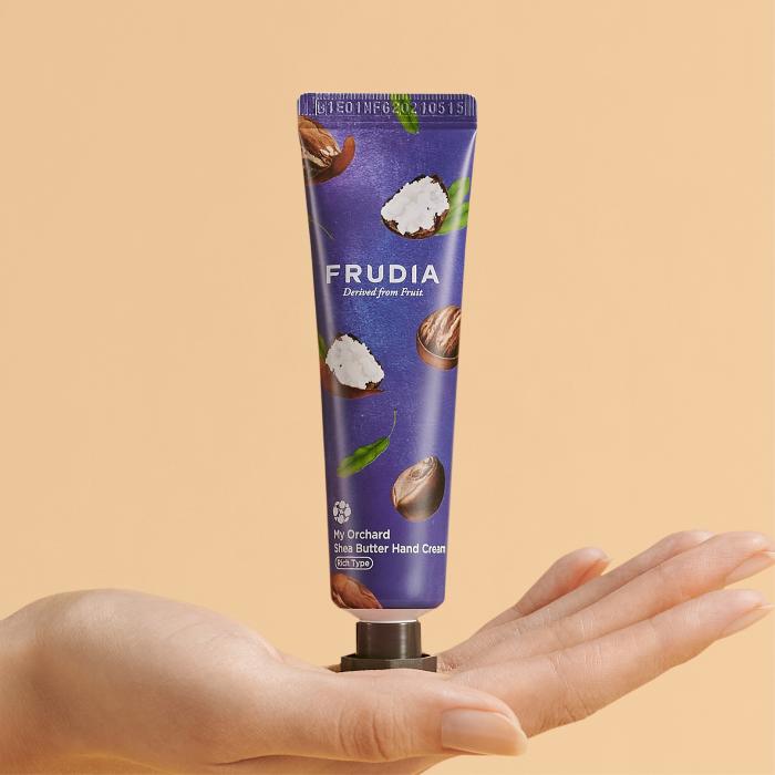 Крем для рук FRUDIA MY ORCHARD SHEA BUTTER HAND CREAM дарит нежной коже рук комфорт, моментально увлажняет, глубоко питает, смягчает огрубевшие зоны, устраняет сухость и шелушения. Он разглаживает кожу рук, запускает процессы регенерации, уменьшает морщинки и заломы, повышает упругость и эластичность. Крем окутывает кожу приятным пудровым ароматом, поднимает настроение и заряжает положительными эмоциями на весь день. В состав крема входит масло ши, которое известно своими регенерирующими и омолаживающими свойствами, поможет смягчить и напитать кожу. Аденозин помогает повысить упругость кожи и ускоряет синтез коллагена. Комплекс масел поможет укрепить иммунитет эпидермиса, оздоровить микробиом, улучшить защитные функции кожи. Витамин Е помогает поддерживать уровень влаги в коже, делает ее гладкой и шелковистой. Растительные экстракты освежают кожу, придают ей тонус, насыщают полезными веществами и витаминами, способствуют скорейшему заживлению ранок и повреждений.