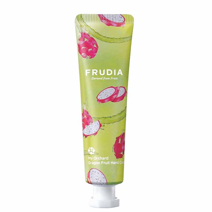 Крем для рук FRUDIA MY ORCHARD DRAGON FRUIT HAND CREAM дарит нежной коже рук комфорт, моментально увлажняет, глубоко питает, смягчает огрубевшие зоны, устраняет сухость и шелушения. Он разглаживает кожу рук, запускает процессы регенерации, уменьшает морщинки и заломы, повышает упругость и эластичность. Крем окутывает кожу приятным фруктовым ароматом, поднимает настроение и заряжает положительными эмоциями на весь день. В состав крема входит масло ши, которое известно своими регенерирующими и омолаживающими свойствами, поможет смягчить и напитать кожу. Аденозин помогает повысить упругость кожи и ускоряет синтез коллагена. Комплекс масел поможет укрепить иммунитет эпидермиса, оздоровить микробиом, улучшить защитные функции кожи. Витамин Е помогает поддерживать уровень влаги в коже, делает ее гладкой и шелковистой. Растительные экстракты освежают кожу, придают ей тонус, насыщают полезными веществами и витаминами, способствуют скорейшему заживлению ранок и повреждений. Крем быстро впитывается, моментально смягчает кожу, дарит ощущение комфорта и приятный тонкий аромат фрукта дракона.