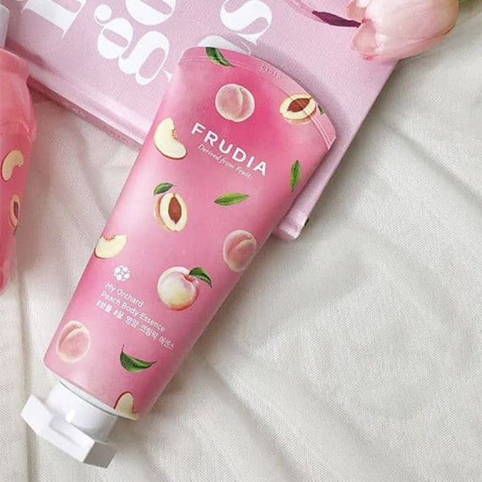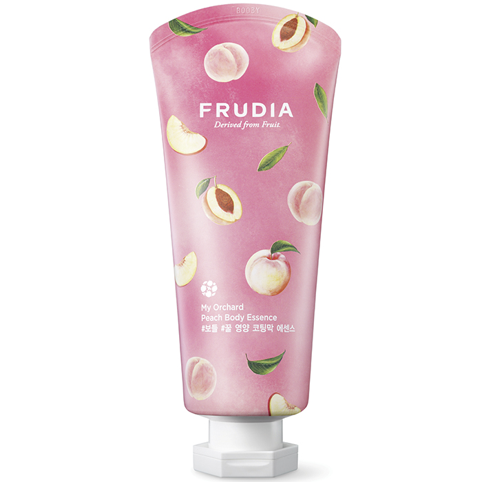 Молочко для тела с персиком FRUDIA MY ORCHARD PEACH BODY ESSENCE - это насыщенный на питательные компоненты продукт для тела с приятным фруктовым ароматом. Нежная текстура подарит моментальное увлажнение, устранит шелушения, сухость и раздражения. Лосьон смягчает кожу, минимизирует пагубное воздействие внешних факторов, делает кожу гладкой и ухоженной. Экстракт персика обладает успокаивающим свойством, снимает раздражения и зуд, а также придает коже красивое сияние. Экстракт меда напитает сухую кожу, сделает ее бархатной и повысит упругость. Комплекс фруктовых экстрактов обеспечивает антиоксидантную защиту и витализирующее действие. Аллантоин стимулирует регенерацию, обладает антиоксидантными свойствами и способствует восстановлению барьерных функций кожи. Регулярное использование лосьона увлажнит, напитает кожу и сделает ее бархатистой.
