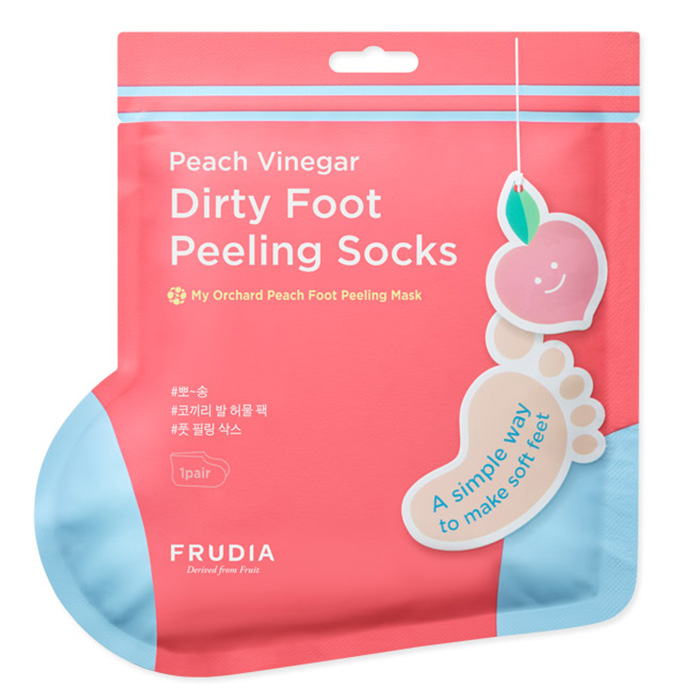 Пилинг-носочки для педикюра с экстрактом персика Frudia My Orchard Peach Foot Peeling Mask - это профессиональная маска для ухода за огрубевшей кожей стоп, которая эффективно удаляет твердые, сухие мозоли без раздражения и возвращает пяточкам мягкость и гладкость. Носочки помогут освежить уставшие ножки. Ментол, входящий в запатентованной комплекс DEO-NATURE, придает свежесть уставшим ногам и устраняет неприятный запах, не причиняя вреда здоровью кожи. Маска направлена на питание огрубевшей, сухой кожи ног, обеспечивая мягкость и гладкость на длительный период. Носочки помогут: -удалить слой мертвых клеток - освежить и охладить -устранить неприятный запах - очистить и разгладить кожу -снять усталость с ног - напитать сухую кожу. Маска содержит натуральные отшелушивающие компоненты для поддержания чистоты и мягкости кожи.