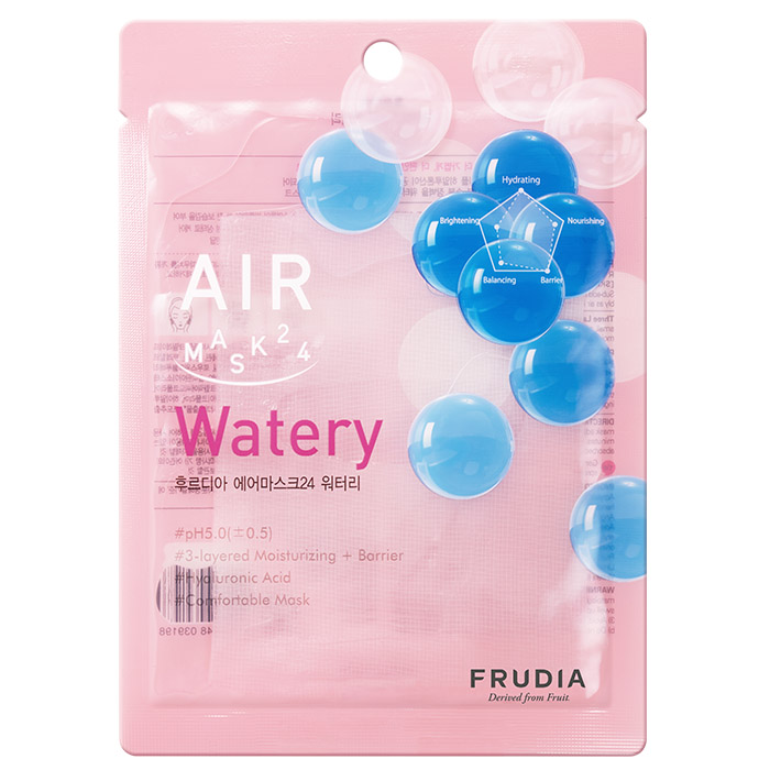 Низкокислотная увлажняющая маска для сухой кожи FRUDIA AIR MASK 24 WATERY - это экспресс-уход для обновления и преображения кожи. Маска с легкой тканевой основой, восстанавливает рН и комфортно прилегает к коже. Она поможет глубоко увлажнить кожу и сохранить влагу для предотвращения обезвоженности. Комплекс фруктовых кислот, входящий в состав помогает в отшелушивании ороговевших клеток, а также глубоко увлажняет кожу и нормализует ее гидробаланс. Маска пропитана прозрачной увлажняющей эссенцией. Разномолекулярная гиалуроновая кислота подарит глубокое увлажнение и поможет повысить упругость кожи. Пантенол помогает смягчить, успокоить раздраженную кожу и усилить барьерные функции. Маска идеальный вариант: