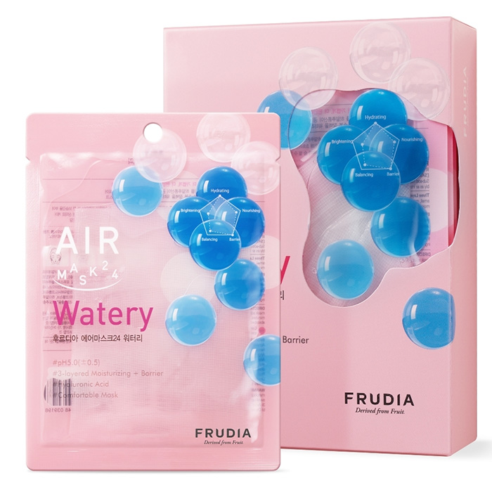 Низкокислотная увлажняющая маска для сухой кожи FRUDIA AIR MASK 24 WATERY - это экспресс-уход для обновления и преображения кожи. Маска с легкой тканевой основой, восстанавливает рН и комфортно прилегает к коже. Она поможет глубоко увлажнить кожу и сохранить влагу для предотвращения обезвоженности. Комплекс фруктовых кислот, входящий в состав помогает в отшелушивании ороговевших клеток, а также глубоко увлажняет кожу и нормализует ее гидробаланс. Маска пропитана прозрачной увлажняющей эссенцией. Разномолекулярная гиалуроновая кислота подарит глубокое увлажнение и поможет повысить упругость кожи. Пантенол помогает смягчить, успокоить раздраженную кожу и усилить барьерные функции. Маска идеальный вариант: