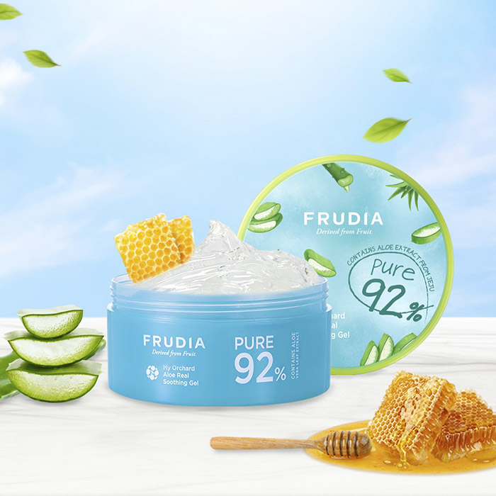Универсальный смягчающий гель с алоэ для лица и тела My Orchard Aloe Real Soothing Gel - это легкая текстура с высоким содержанием экстракта алоэ (92%), моментально успокаивает и увлажняет кожу. Помимо алоэ в составе содержатся и другие полезные для кожи компоненты. Экстракт центеллы повышает регенерирующие свойства, укрепляет барьерные функции кожи и сосуды. Зеленый чай является антиоксидантом, подавляет действие свободных радикалов, которые оказывают пагубное воздействие на кожу. Фруктовые экстракты насытят кожу витаминами, а пантенол устранит раздражения. Универсальный гель с алоэ Фрудиа подойдет любому типу кожи. Он поможет восстановить кожу после солнечных ванн, солярия или легких ожогов. Гель приятно охлаждает и смягчает кожу, не оставляет дискомфорта и липкости после использования. Подходит для использования после бритья, в качестве маски для волос, как база под макияж, для жирной кожи заменит крем. Если хранить гель в холодильнике будет более ярко выраженное противоотечное действие.