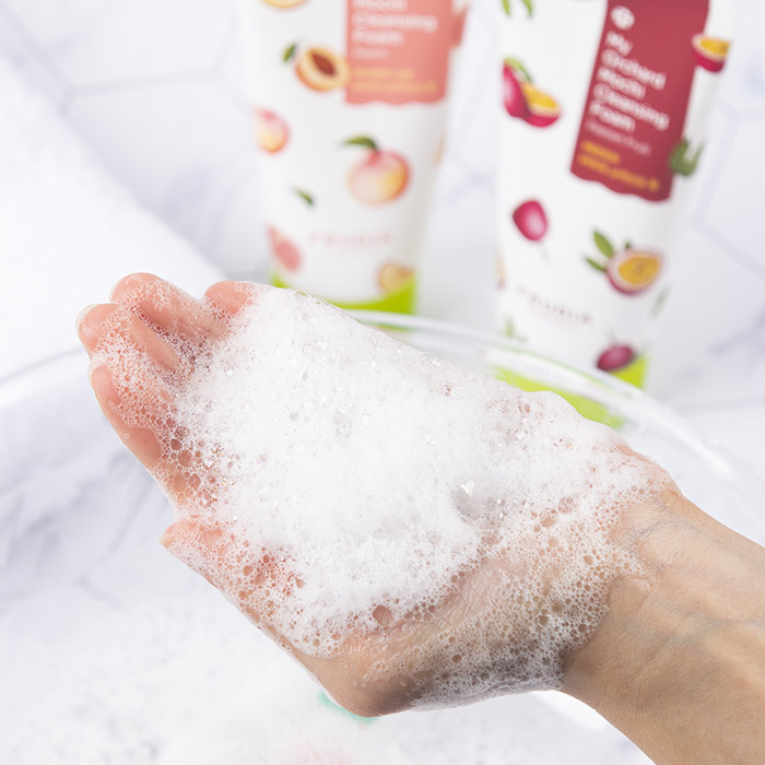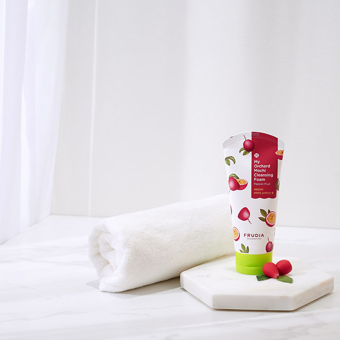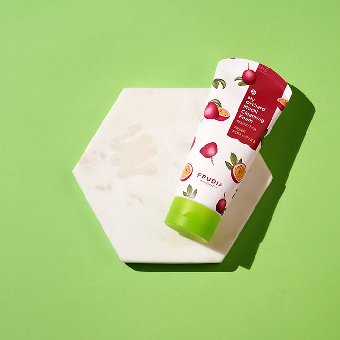 Очищающая пенка-моти с маракуйей FRUDIA MY ORCHARD PASSION FRUIT MOCHI CLEANSING FOAM - это нежная, воздушная текстура, безупречно очищает кожу и дарит чувство свежести и чистоты. Пенка содержит увлажняющие компоненты и растительные экстракты, благодаря которым будет деликатно очищать кожу, не оставляя чувства стянутости. Пенка со слабой кислотностью рН5,5 нормализует уровень рН кожи для поддержания ее здорового состояния и защищает кожный барьер от потери влаги даже после очищения. Удаляет остатки макияжа и пыли, предотвращает закупорку пор. В составе содержатся растительные и фруктовые экстракты, направленные на дополнительное увлажнение и уход за кожей. Экстракты меда и маракуйи помогают улучшить тон кожи и придают сияние. РНА-кислота увлажняет и мягко отшелушивает кожу, удаляя ороговевшие частички, придавая гладкость и улучшая микрорельеф. Пенка-моти с маракуйей идеально подходит для грубой, нормальной кожи. Используйте пенку ежедневно в утреннем и вечернем уходе.